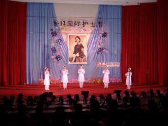 为庆祝2007年国际护士节,纪念近代护理的创始人南丁格尔,5月11日晚6时,由护理系、公共基础部联合举办的“ 烛光里的微笑”5.12国际护士节庆祝活动在学术厅举行。院临时党委书记陈明非、院副书记魏丽娜、公共基础部书记洪聿荣、护理系刘登蕉主任、谢涛书记、刘珍红副主任等领导及老师出席了此次晚会。