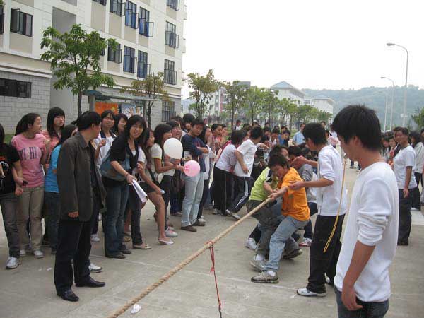 为了进一步推动全民健身运动,丰富检验影像系学生的业余文化、体育生活,促进学生的身体素质,增进全系各班级之间的团结、友谊,增强班集体凝聚力和战斗力,检验影像系学生会体育部以“友谊第一,比赛第二”为主题举办了庆“五·一”拔河比赛。预赛于2007年4月27日下午在第一食堂门口举行,28下午进行了决赛。经过紧张激烈的比赛和“拉拉队”的呐喊助威,最终决出了前四名,他们分别是:05检验101班、04检验501班、06影像101班、05检验501班。