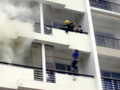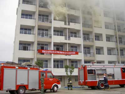 演练于下午三时正式开始,分为火灾报警、人员紧急疏散逃生和火灾扑救三个环节。演练模拟学生公寓着火,学院值班室接到报警后,立即报告院领导并拨打火警“119”;院领导启动消防预案,老师引导学生迅速逃离火灾现场;闽侯县公安消防大队一中队派出14名消防官兵,2部消防车进行实战灭火。演练过程指挥有力、行动有序。演练现场人声鼎沸,气氛紧张,秩序井然,演习十分逼真有效,达到了预期的效果。