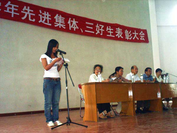 随后进行颁奖仪式,受表彰的文明班级代表和先进个人代表上台领奖;张丽梅等三位同学分别代表文明班级和先进个人发言,把会场的气氛推向了高潮。 (药学系)