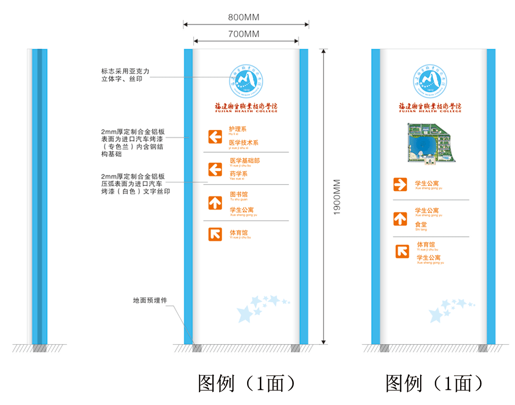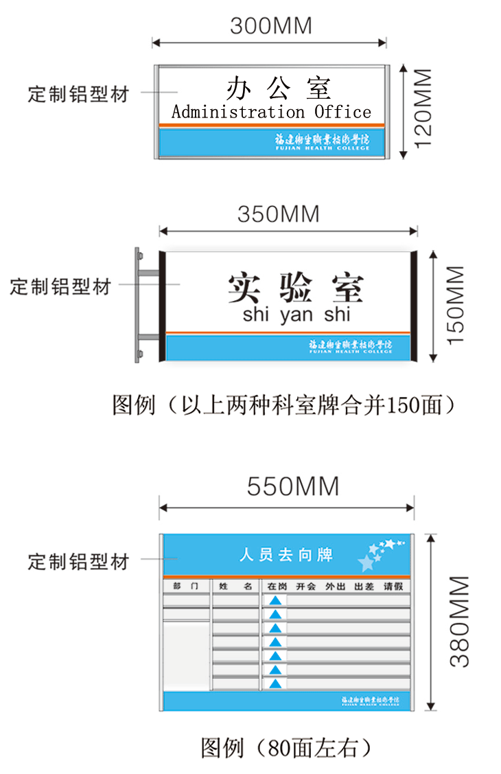 导向牌4面、楼层分布图(带基座)1面、楼层公布图32面、楼牌23面、指示吊牌5面、科室牌150个左右、去向牌80面左右。