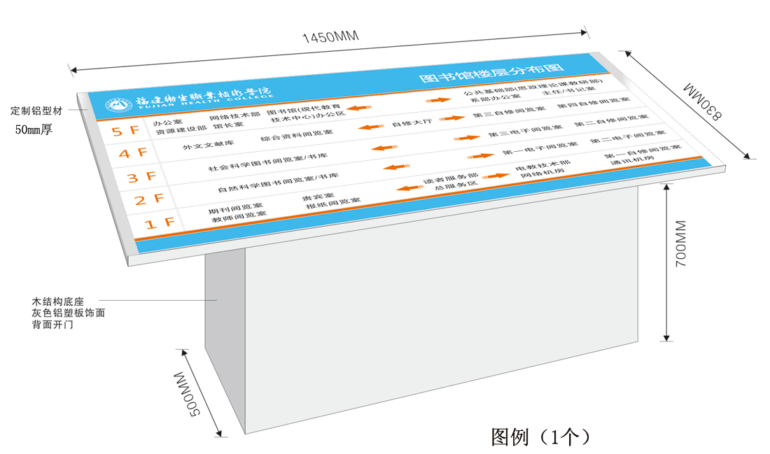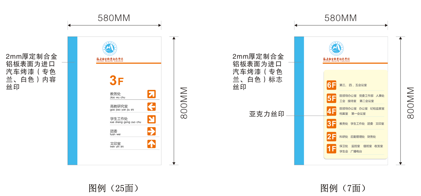根据我院校园导向系统建设需要,拟定制一批导向牌、楼层分布牌、科室牌等。