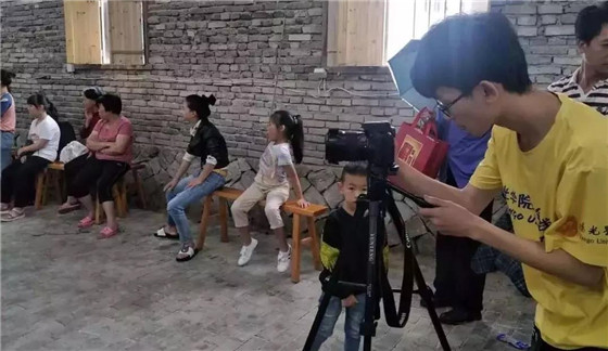 实践队员在百年古榕树下,用视频拍摄设备记录南音传承人夏建明的演奏过程,将南音以视频的方式呈现到观众的面前。这些美妙动听的声音吸引了许多路过的村民。