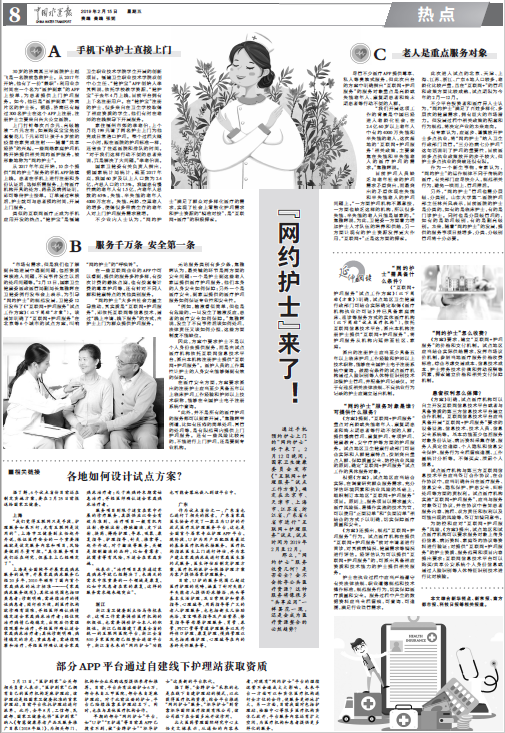 不少业内人士认为,“网约护士”满足了群众对多样化医疗的需求,实现了社会上零散化护理需求和护士资源的“精准对接”,是“互联网+医疗”的积极探索。