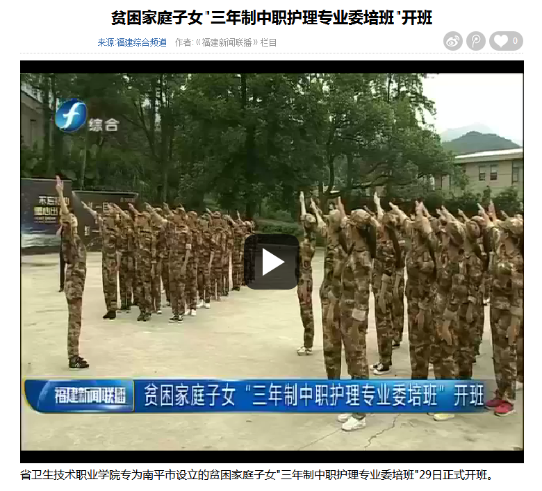 【福建电视台综合频道】贫困家庭子女"三年制中职护理专业委培班"开班(视频新闻)
