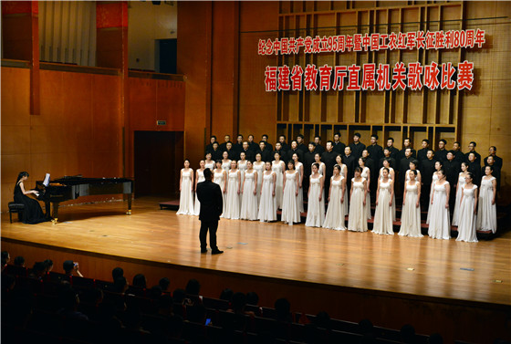 6月26日下午,省教育厅直属机关在福建大剧院音乐厅举行庆祝中国共产党成立95周年暨中国工农红军长征胜利80周年歌咏比赛。