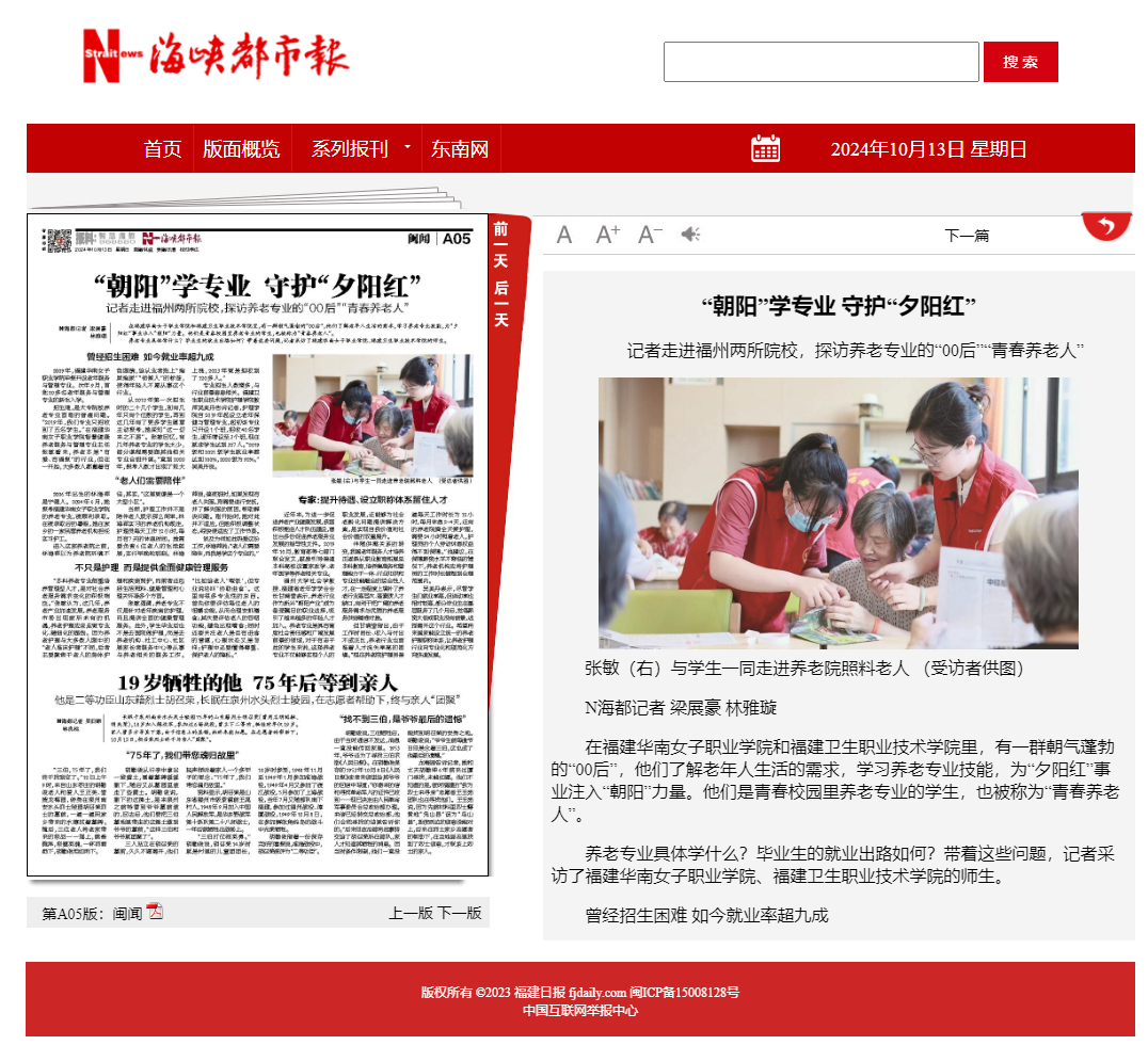 在福建华南女子职业学院和开云在线登录app入口里,有一群朝气蓬勃的“00后”,他们了解老年人生活的需求,学习养老专业技能,为“夕阳红”事业注入“朝阳”力量。他们是青春校园里养老专业的学生,也被称为“青春养老人”。
