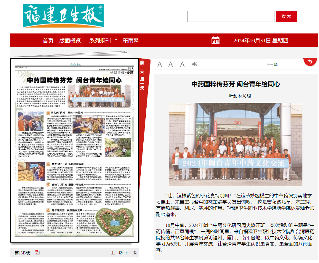 福建卫生报 2024年10月31日 链接:https://fjwsb.fjdaily.com/pc/con/202410/31/content_407186.html