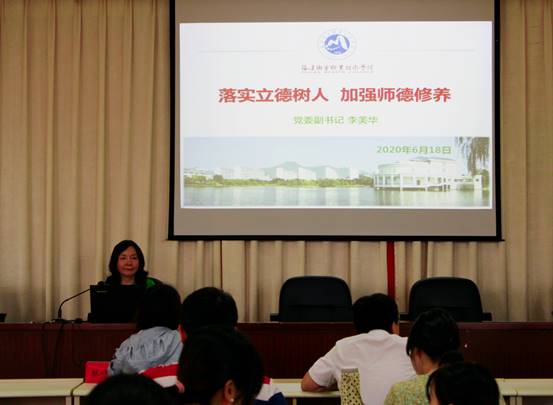 6月18日下午,我院举办师德师风专题讲座。学院党委副书记李美华应邀作专题讲座,近年新进教师及专任辅导员代表共50多人聆听了讲座。