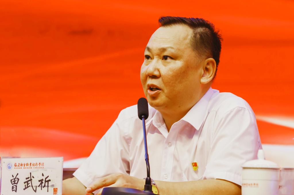 最后,曾武祈发表了热情洋溢的讲话,他在讲话中用三个“同”与三个“共”深情寄语广大教职员工,要以不宾之士的高度成校成己“同频共振”,要以甘为人梯的气度敬业乐群“同心共情”,要以笃信笃行的态度奋楫争先“同舟共济”,共同以时不我待、只争朝夕的精神共同推动学校跨越发展。