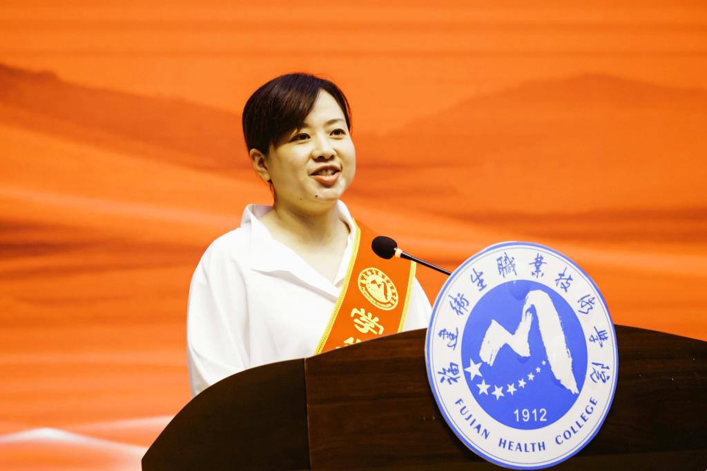 护理学院刘菲菲作为获奖教师代表在会上发言,她回顾了13年的执教时光,讲述从教以来遇见前辈老师们的感人事迹,感谢学校对教师的关心爱护,她将继续与所有教师一道锐意进取,不断提升教科研水平,坚守为党育人、为国育才的初心使命。