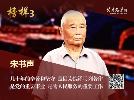 在从事马列主义著作学习翻译研究过程中,宋书声形成了坚定的马克思主义世界观、人生观、价值观,并以此指导自己的一生。宋书声认为,在编译局这几十年没有虚度年华。有人问他,是什么力量支撑着他?精神支柱是什么?宋老说,一是对马克思主义的坚定信仰和信念,二是对党对国家对人民的无限忠诚,三是对所从事的工作的无限热爱和执着。
