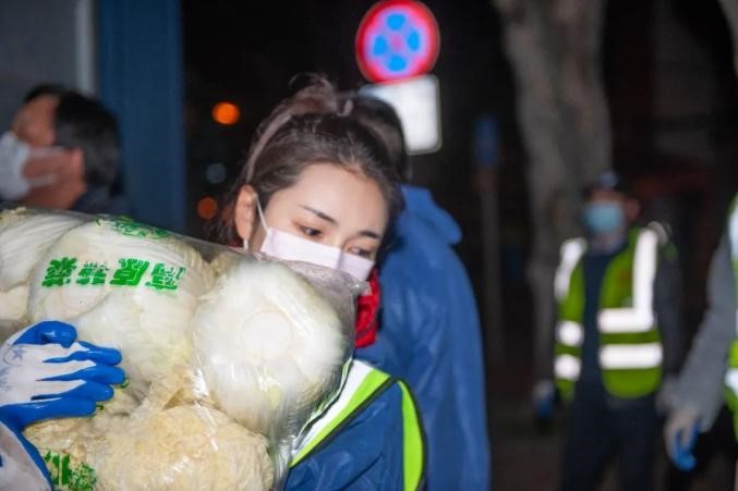 王利在搬运带给社区居民的物品