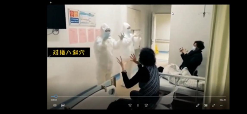课程一开始,危艳萍为大家播放一段视频“一、二、三,吸气……”“记住,有个要点,吸三秒,呼六秒……”,视频中是危艳萍在指导新冠肺炎病人做呼吸操。教病人做呼吸操,并不在援鄂医疗队对新冠肺炎病人的护理职责范围之内,但是作为一名专业护士,一位热爱护理事业的白衣天使,危艳萍觉得,只要对患者康复有益,做什么都可以,教病人做呼吸操,在防护服背后写心灵鸡汤,使用精油为病人安眠,组员为病人手绘64幅加油小插画,这些精神上的慰藉有效的拉近了医护人员与病人之间的距离,只为让病人心情愉快,更快的战胜病魔。