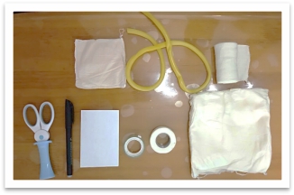 实训在线教学主要通过线上授课→线下实践→线上反馈的模式进行。教师在课前通知学生根据自身情况准备实训用物,同学们在求助家人朋友帮助的同时,也发挥自己的聪明才智,各自发掘可用之物,玩偶、枕头、靠垫等充当CPR模拟人,保温杯、扫帚、拖把等止血包扎模拟道具齐上阵。