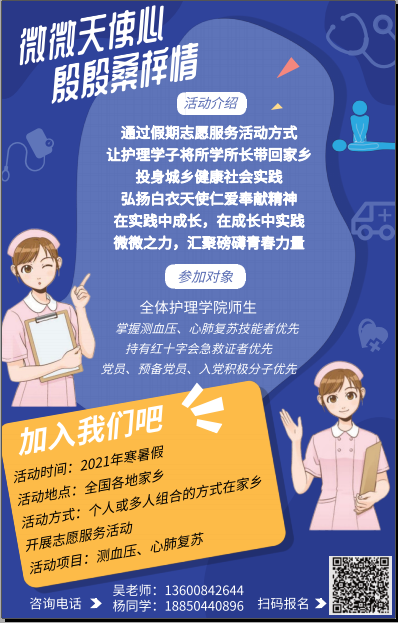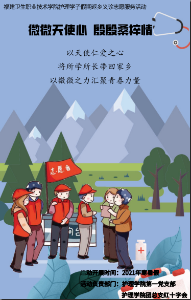 为充分发挥高校“双带头人”教师党支部在党建、学术方面的独特优势,做好党支部带头引领作用与战斗堡垒作用,同时增强共青团带领青年在经济社会发展中发挥生力军和突击队作用,弘扬红十字会的人道、博爱、奉献精神。开云护理学院第一党支部协同护理学院团总支红十字会开展返乡志愿服务活动,组织护理学子在2020年寒假返乡期间,发挥护理专业的知识与技能,在家乡开展志愿服务活动,反哺家乡的养育之恩,弘扬白衣天使的仁爱奉献精神。