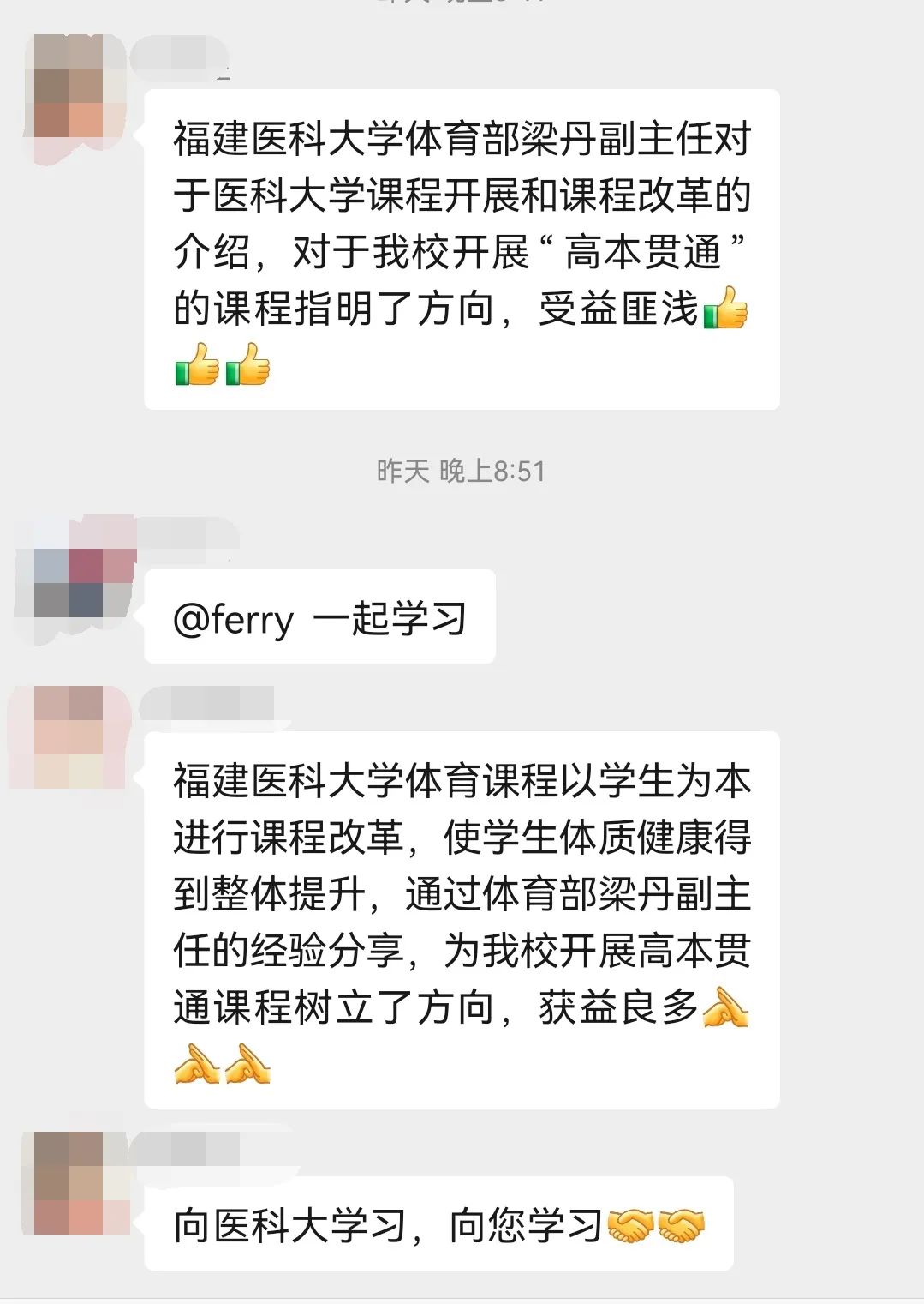 梁丹还围绕教学目标、教学内容以及教学评价等方面,就“高本贯通”体育课程教学以及如何与福建医科大学体育课程深度融合,在会上与开云体育部教师进行深入地探讨,为后期的教学指明了方向。
