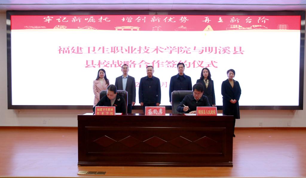 学期伊始,学校党委书记曾武祈一行赴明溪县签署校县合作战略协议,并为大学生社会实践基地及红色教育基地揭牌。省卫健委综合监督处处长陈继清,三明市卫健委党组成员黄小平,明溪县县委书记钟科、县长陈华伟,学校副校长郑翠红等参加活动。