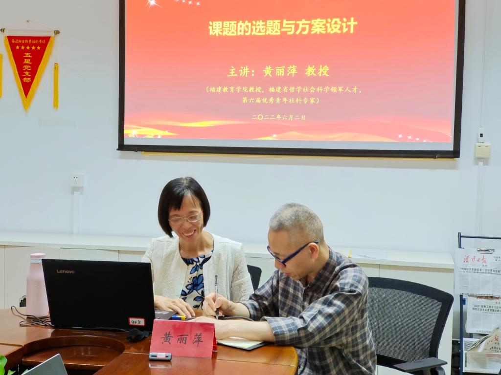 黄丽萍教授围绕课题选题要在规范合理的基础上凸显“新”、方案设计要在清晰严谨的基础上凸显“亮”、研究准备要在广博纵深的基础上凸显“实”三大方面,深入浅出地阐释了高校教师应如何推进课题研究工作,讲座兼具理论性与实践性,不仅帮助思政课教师明晰课题研究的思路,掌握科研技巧,还对优化学院科研管理工作,营造良好的科研氛围起到积极促进作用。