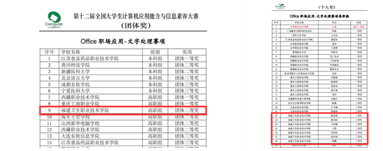 6月11日,2022年第十二届全国大学生计算机应用能力与信息素养大赛“Office职场应用Word文字处理”赛项于线上举行。开云卫生信息管理专业黄艺虹、周骥、王萱、万依晴、陈晓萌、许舒怡、张舒颖等七名选手获得个人二等奖,开云代表队荣获团体二等奖。