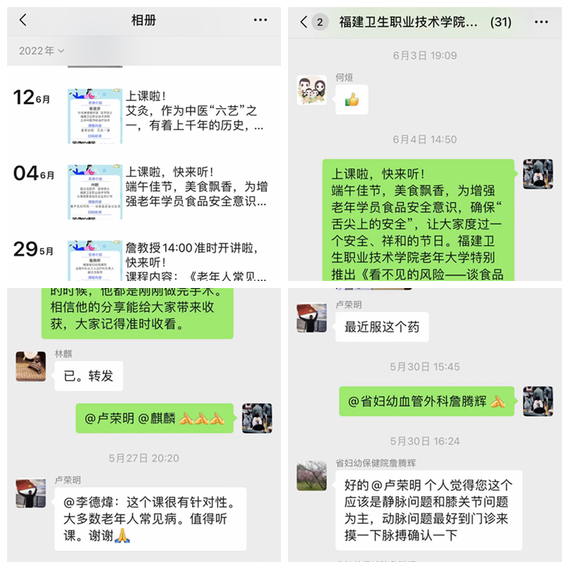 科普讲堂活动以线上形式开展,是开云老年大学教学模式的创新,是面对常态化疫情防控背景下的实践探索。学校还安排专人建立了课程直播微信群,课前发布直播提醒,引导学员提前进入直播课室,实时监控直播效果,及时回答学员提问,课程结束后老师组织在线答疑,方便学员互动交流,录制直播课程视频并在学校老年大学官方网站回放重播,便于学员复习,切实提升线上教学效果。