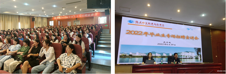 为拓宽2022届毕业生就业渠道,6月29日下午,药学院邀请福建亿彤生物科技有限公司、丽珠集团福州福兴医药有限公司和福州市金永顺医疗信息咨询有限公司等企业入校举办招聘宣讲会。药学院党总支书记林颖峰、副书记赖文金及2022届近两百多名毕业生到场聆听。本次招聘宣讲会同时开通线上直播,让更多毕业生可以同步参与。