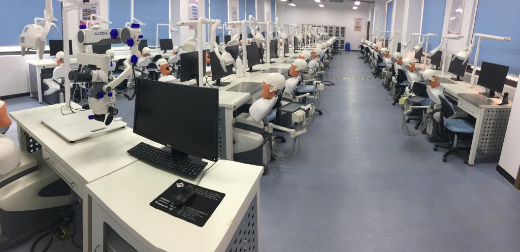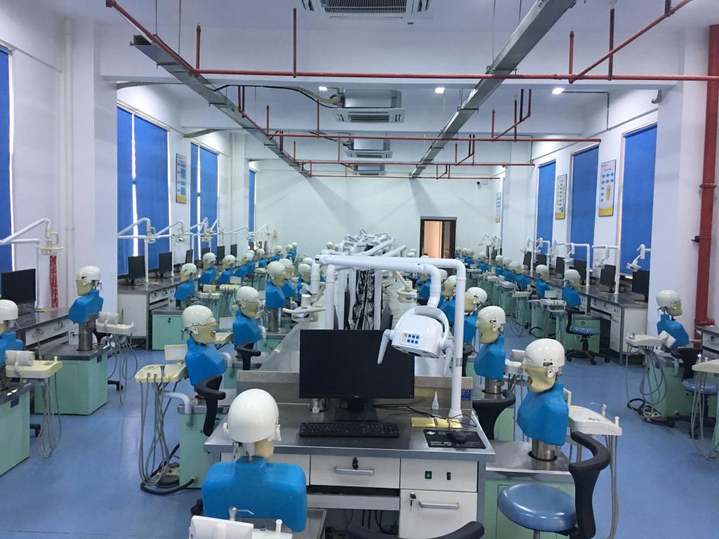 校内实训基地面积达700平方米,包含口腔综合实训室、口腔模拟诊室、口腔修复工艺室及门诊部口腔科等,拥有100套对接临床的仿头模教学系统,教学设备总值为800多万元,为学生开展各项实训对接口腔临床工作任务提供了坚实的基础。