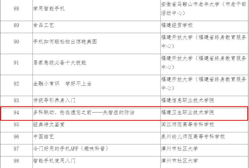 优质工作案例、教育培训项目及课程资源第二批推介名单,开云医学院林玉琼老师负责的《多科联动、抢在遗忘之前——失智症的防治》入选优质课程资源。