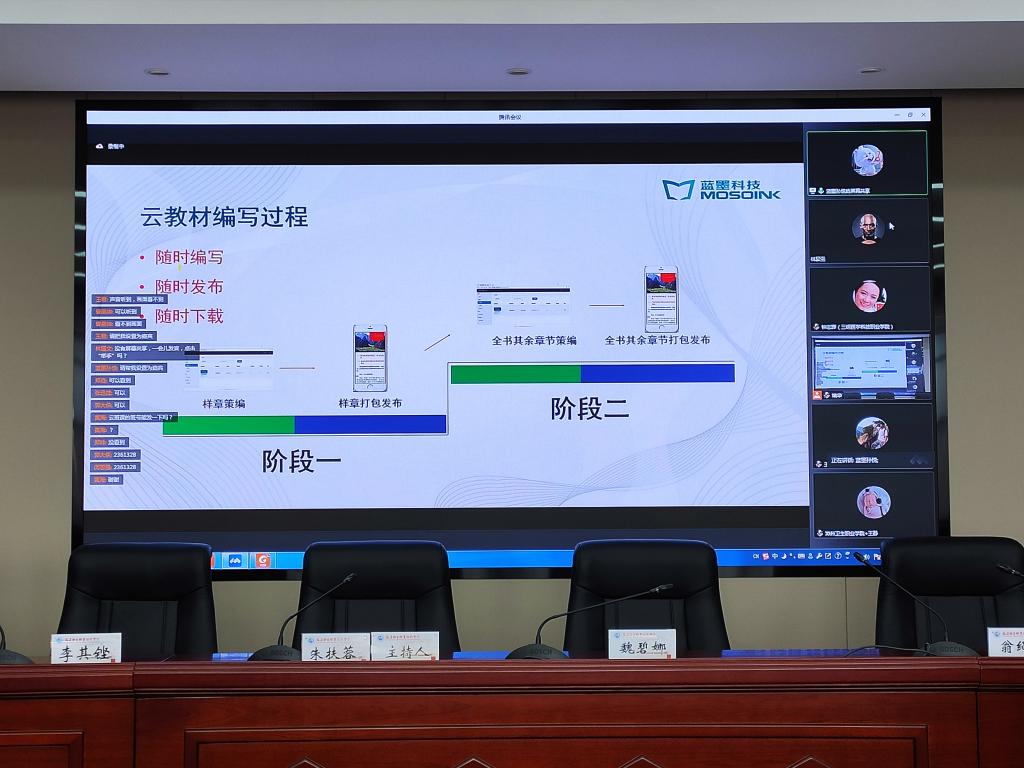 随后,本批次数字教材购买服务中标商、国家数字教材标准起草成员单位、北京智启蓝墨信息技术有限公司对数字教材编写的具体要求作出说明。该公司华东区负责人王君从新形态教材的发展趋势与云教程介绍、云教材获奖和应用案例分享两个方面介绍了新形态教材建设及发展趋势,对今后教材编写和专业建设提供了良好的思路。编辑孙悦从云教材策编、编写经验分享、在线编辑器编写教材操作实训、培训复盘总结、使用资源版权登记、上架发布要求和规范六个方面介绍云教材在线编写器的使用方法和注意事项,对数字教材编写进行培训指导。