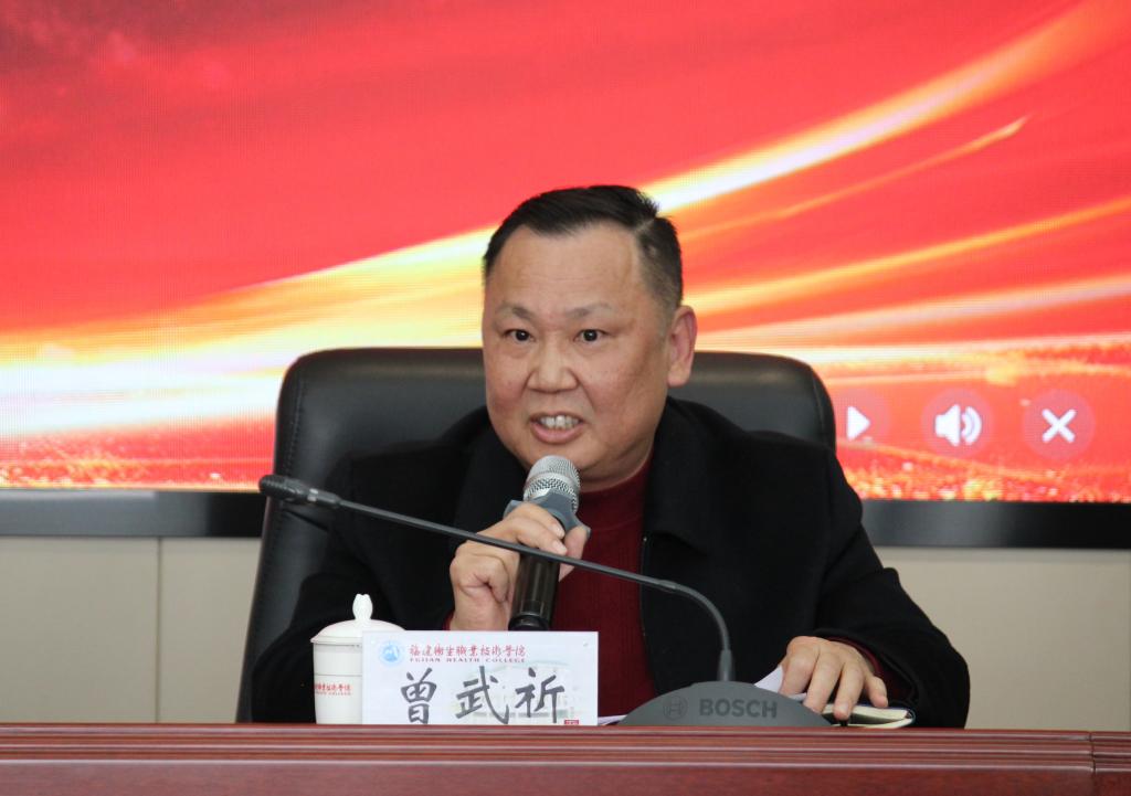 曾武祈代表学校向专委会的成立致以热烈的祝贺。他表示,学校将全力支持、服务、保障专委会开展工作,不断提升老年居家照护质量,不断增强老年人的获得感、幸福感和安全感,为老年事业高质量发展持续贡献力量。