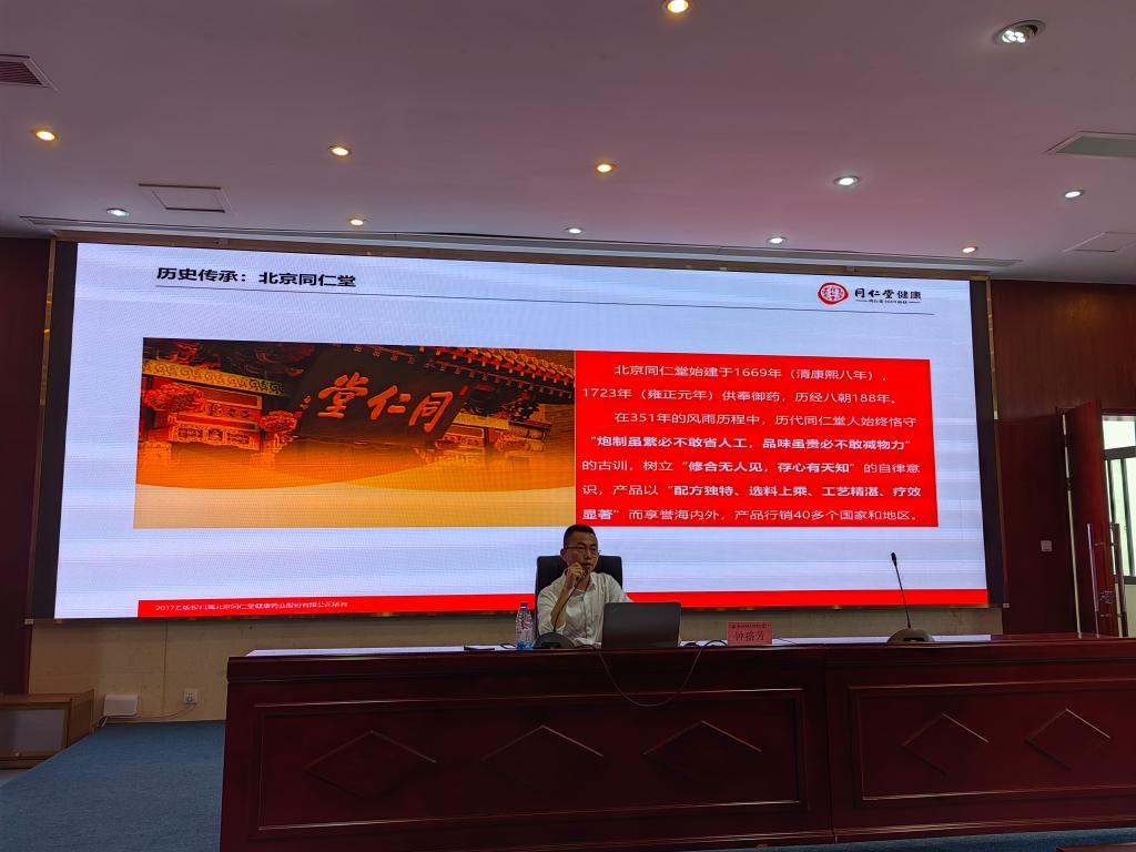 药学院第一党支部特邀北京同仁堂健康药业华南区总监、党支部书记钟盛芳为师生举办《不忘药者初心,牢记健康使命——引领学生职业教育第一课》讲座。钟盛芳结合自身近20年丰富的从业经验,介绍了中药行业的特点及发展前景,通过数据和案例介绍中药行业常见岗位和企业用人要求,对学生未来的学习和职业规划提出建议,希望同学们能踏实认真学习,在学好专业知识和技能的基础上,积极参加企业实践,充实自己的校园生活,提高专业技能,为未来的职业做好准备。本次讲座内容丰富、深入浅出、生动有趣,引导学生了解自己所学专业,明确学习目标和方向,增强对学院和专业的认同感和归属感,受到了学生极大的欢迎。