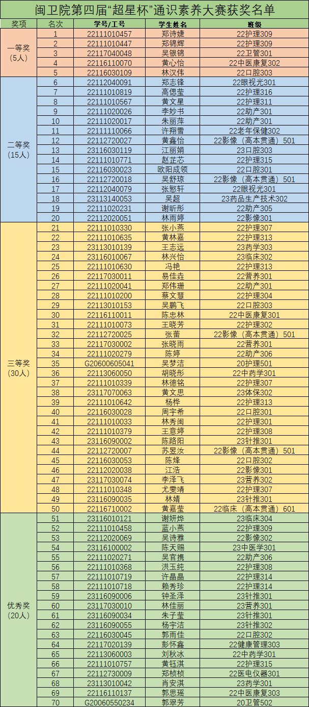 闽卫院第四届“超星杯”通识素养大赛获奖名单