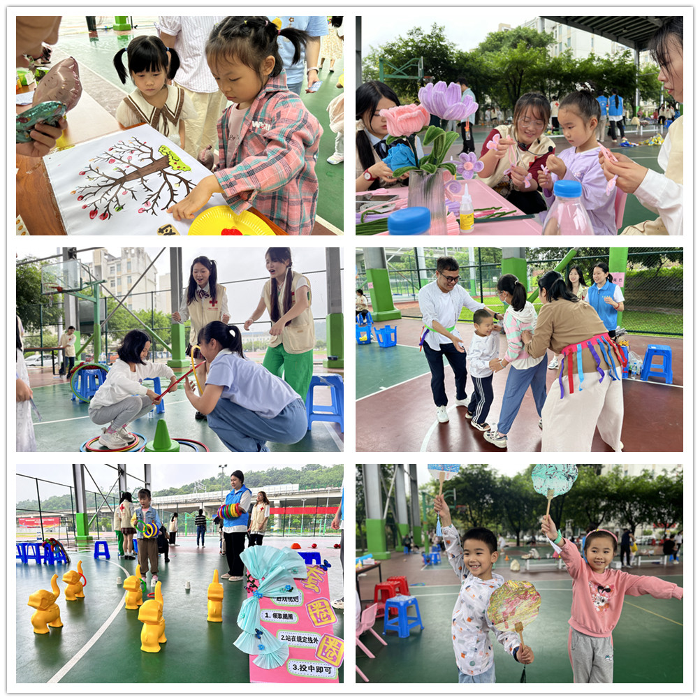 孩子们精彩的开场表演赢得了在场人员的连连称赞,将现场氛围带入佳境。随后的游园环节,师生们精心设置的扭扭棒手工、漂漆扇子DIY、拉力绳贴贴纸等二十余项融入感统训练方法和技巧的趣味游戏,更是让活动现场洋溢着家长孩子们的欢声笑语。本次活动有效提升了同学们对儿童行为的观察能力和沟通能力,也丰富了教职工们的校园文化活动,进一步营造了温馨和谐的校园氛围。