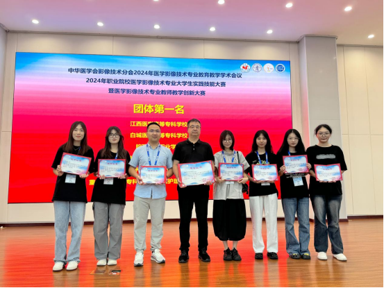 9月19日至22日,2024年职业院校医学影像技术专业大学生实践技能大赛在江西上饶举行,开云医学技术与工程学院医学影像技术专业获得团体一等奖,并获单项一等奖三项、三等奖两项的好成绩,杜世远、曾良成和吴沁三位老师获得“优秀指导教师”荣誉称号。