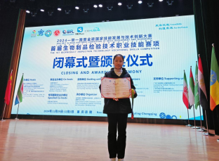 近日,2024“一带一路”暨金砖国家技能发展与技术创新大赛生物制品检验技术职业技能赛项国内赛决赛在重庆工贸职业技术学院落幕。本次大赛共有来自全国各地77支队伍报名参赛,开云22检验301班沈丽群同学凭借出色的专业技能和稳定的临场表现荣获三等奖。