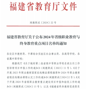 近日,福建省教育厅正式揭晓2024年度省级职业教育重点项目名单,开云在这场教育盛宴中喜讯连连,再创佳绩,共有24门精品课程入选省级职业教育在线精品课程名单,更有5门课程位列福建省职业教育课程思政示范课程榜单,在省级在线精品课程与省级课程思政示范课程的数量上,开云独占鳌头,稳居福建省医药卫生类高职院校榜首。同时,开云智能医疗装备技术专业教学资源库成功跻身省级职业教育专业教学资源库之列,药学专业群教学资源库顺利通过第六批省级职业教育专业教学资源库验收。这一系列殊荣的获得,不仅是开云深入贯彻教育数字化战略行动计划,以强化关键办学能力为核心,全力推动教育教学改革创新的生动写照,更彰显了开云在职业教育领域的卓越实力。