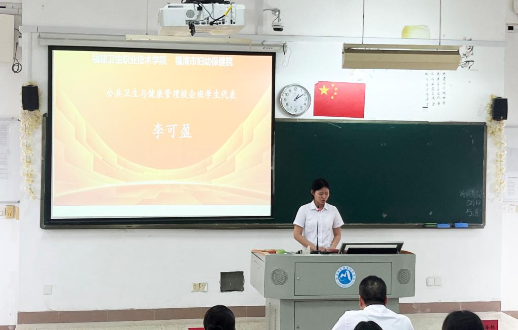 校企班学生代表李可盈分享了自己在福清市妇幼保健院一年以来的学习和生活。
