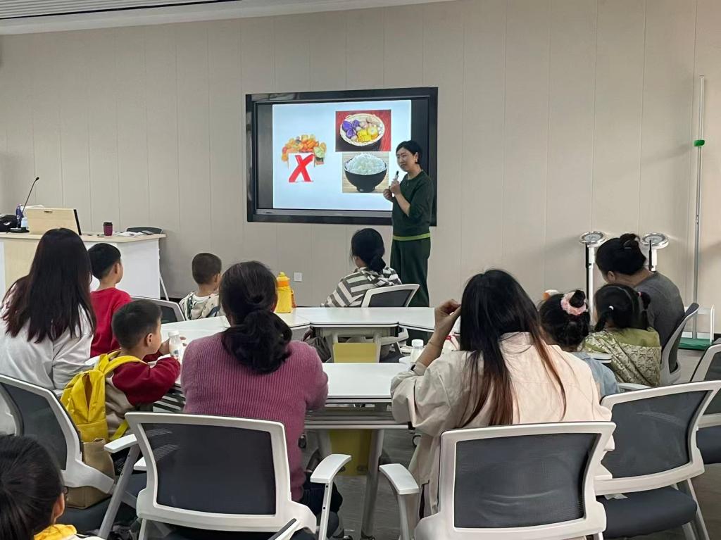 医学营养课堂上,吴晶老师以“认识主食”为切入点,通过趣味问答、食物分类小游戏、能量小知识讲解等形式,引导孩子们轻松分辨主食与零食,明白粗细搭配、少吃高糖食品的重要性。亲子共同学习、互动探讨,科学饮食观念在轻松氛围中根植心间。