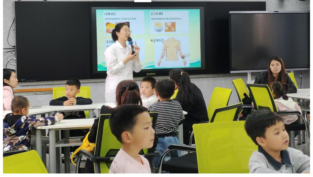 中医技术课堂充满传统韵味。吴若云老师用童趣化语言,向孩子们介绍“望闻问切”四诊法,展示针灸、拔罐、推拿、刮痧等常见中医技艺。孩子们化身 “小小中医师”,亲手听诊心跳与呼吸音,沉浸式体验刮痧操作,在动手实践中感知身体奥秘,对传统医学的好奇与热爱油然而生。