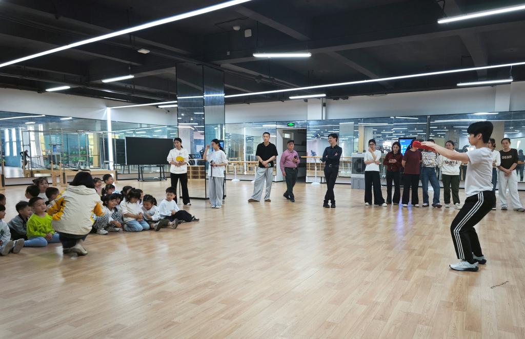 在少儿武术课堂,郑子晗老师化身“武术导师”,用生动的语言讲解武术起源与礼仪,手把手教孩子们练习标准抱拳礼和基础动作。趣味互动、简短套路展示轮番上演,孩子们一招一式有模有样,不仅锻炼了身体协调性,更在潜移默化中感悟中华武术的精气神,尽显蓬勃朝气。