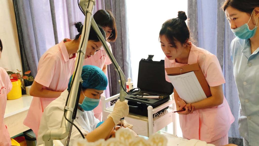 随后,同学们分为四组,分别体验前台接待、皮肤检测与咨询、超皮秒治疗观摩以及超皮秒术后护理的实践操作,并用自己所学的知识为到场的妈妈顾客们详细讲解超皮秒治疗按摩的原理以及术后护理方法,参加活动的妈妈们纷纷表示看到同学们能够将所学知识融会贯通,真是充分感受到了职业教育的魅力。