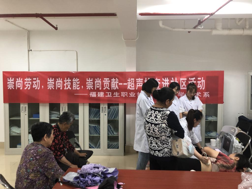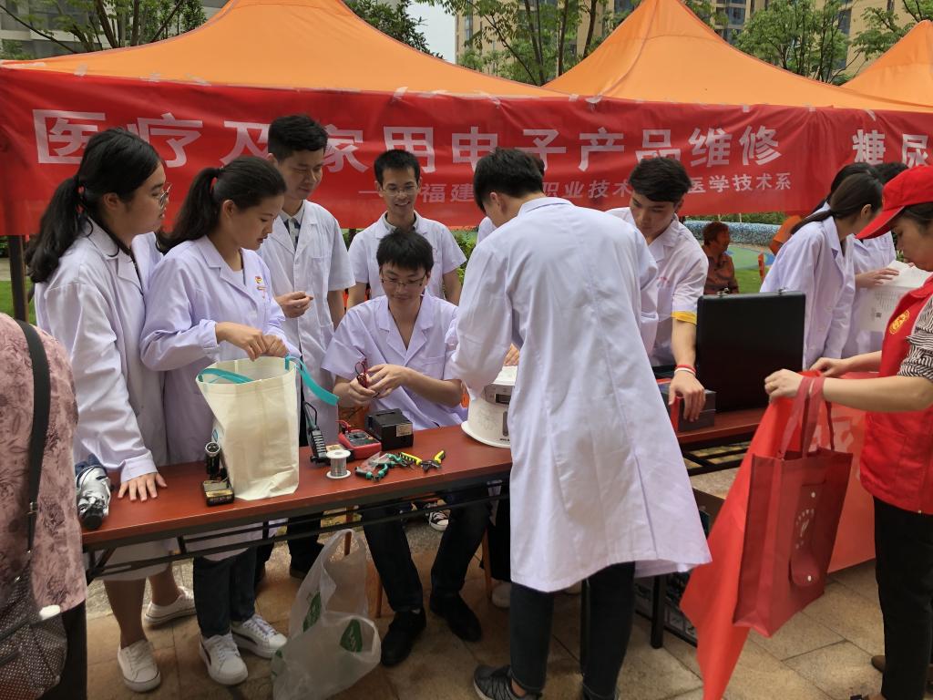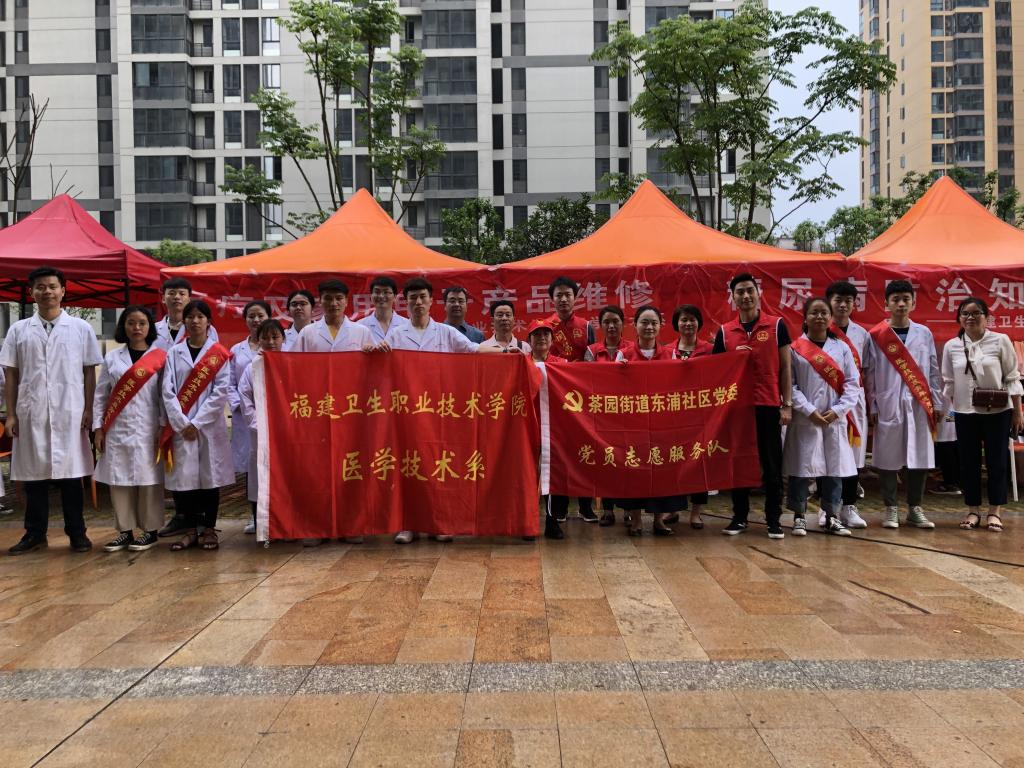 为积极响应2019年全国职业教育活动周的号召,充分展示我院办学特色和成果,发挥我院医学职业技能优势,推动“两学一做”学习教育常态化制度化,充分发挥基层党组织战斗堡垒作用和党员的先锋模范作用,医学技术系党总支组织25位专业教师(其中,教师党员19名)带领48名学生(其中,学生入党积极分子39名)于2019年5月16日前往医技系共建合作单位福州市晋安区茶园街道所属的洋下东社区洋下花园小区和东浦社区开展6项职教活动。