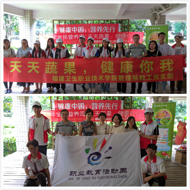 为进一步贯彻落实十九大精神,宣传和展示职业教育成果,响应“健康中国”战略,促进全民营养,提高全民健康水平。5月17日,管理系教工党支部联合医学营养教研室前往晋安区幸福城小区,开展“天天果蔬,健康你我”职教体验活动。管理系教工党支部党员、管理系医学营养专业教师以及学生志愿者共25人参加了此次活动。