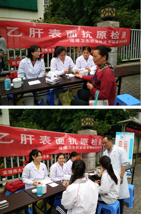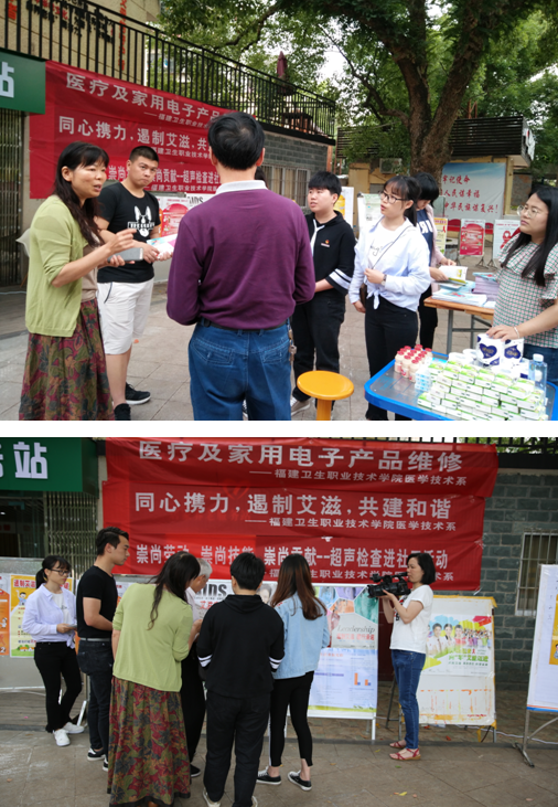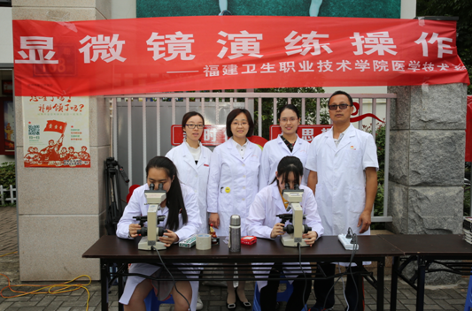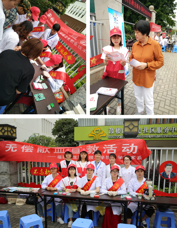 为积极响应2018年全国职业教育活动周的号召,充分展示我院办学特色和成果,发挥我院医学职业技能优势,推动“两学一做”学习教育常态化制度化,进一步加强基层服务型党组织建设,充分发挥党员模范带头作用,以“职教改革四十年,产教融合育工匠”为主题,医学技术系组织24位专业教师(包含教师党员)带领46名学生(包含学生入党积极分子和学生干部)于2018年5月10日前往福州市国光社区和洪山桥社区开展系列职教活动。