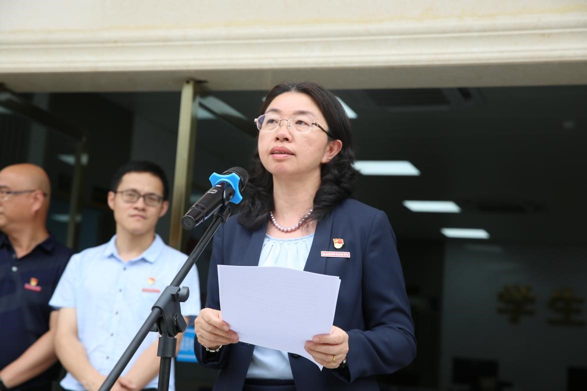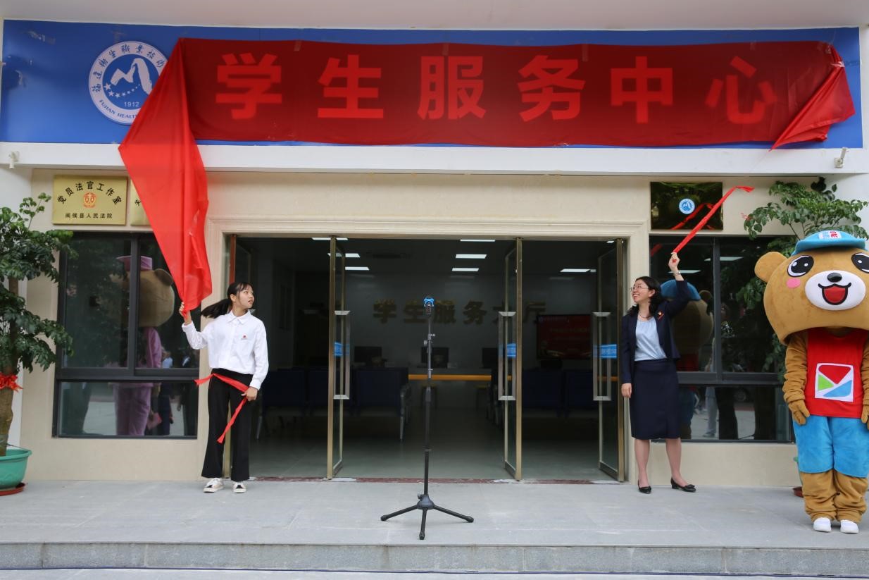 在热烈的掌声中,黄铭珊与学生代表一起揭下覆盖在牌匾上的红绸,“学生服务中心”6个大字闪亮夺目。