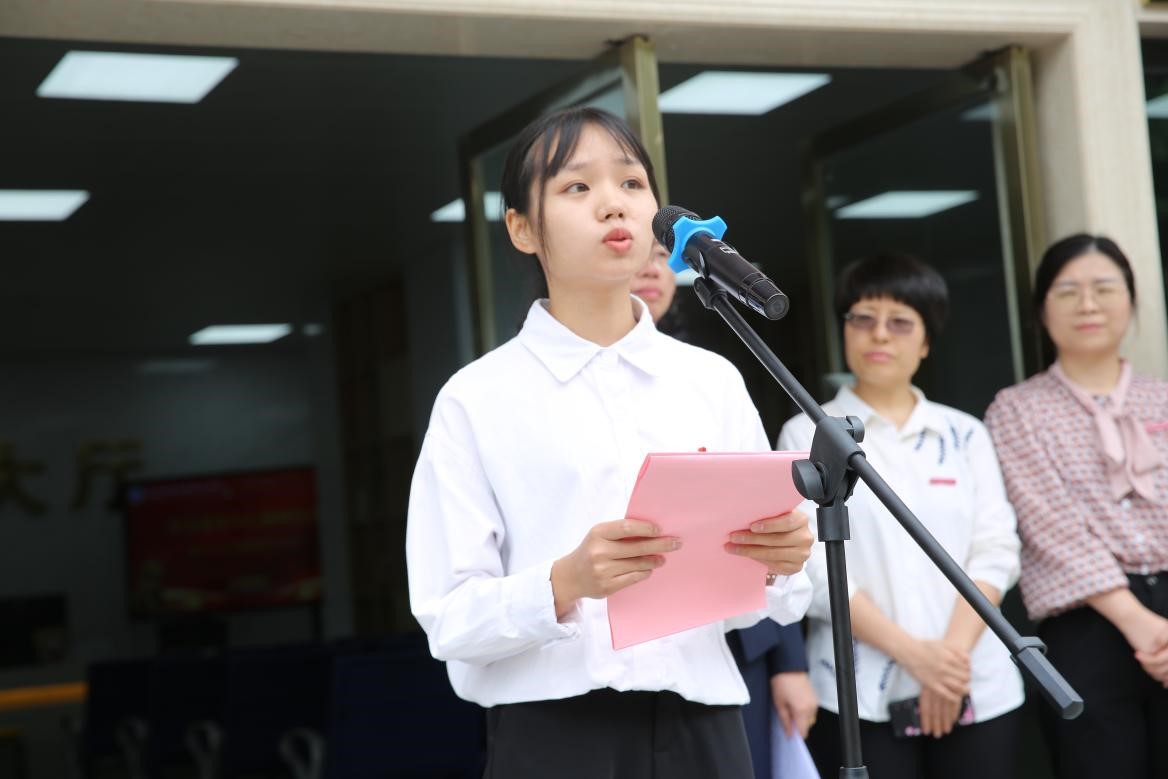 20口腔303班郑雅婷代表学生服务中心工作人员发言,她表示要做到多加宣传、做好组织、熟悉业务、热情服务四方面工作,营造一个良好、愉快的氛围,更好的服务同学。