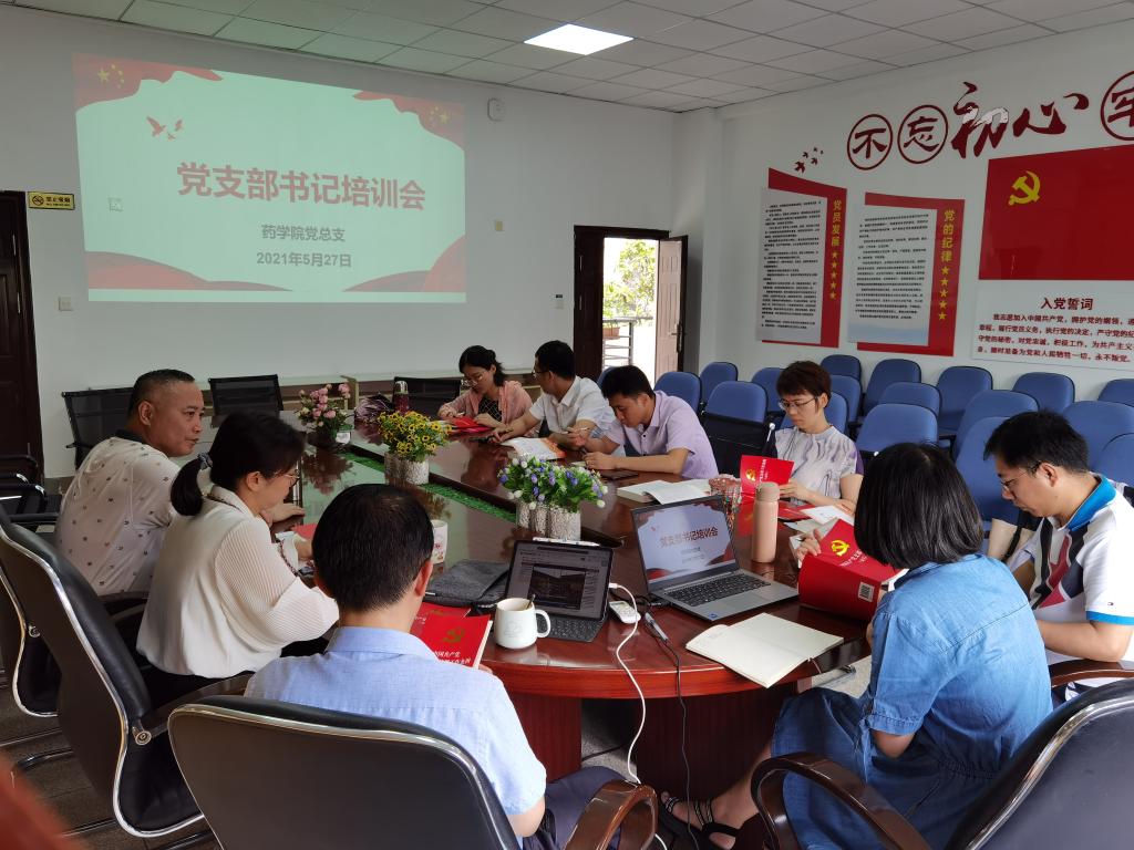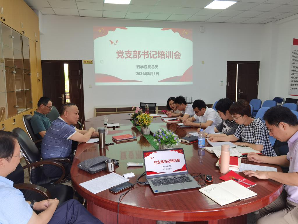 为深入贯彻落实学校《基层党组织“学习·诊断·建设”行动的工作方案》文件要求,切实提升基层党务干部政治素养和党建业务能力,药学院党总支于2021年3月--6月组织开展党支部书记轮训班,药学院党总支委员、各党支部书记参加培训。