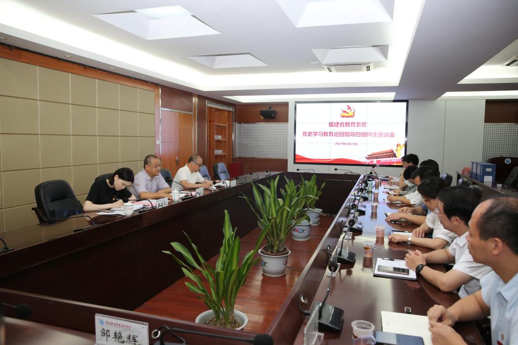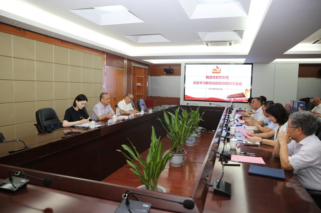 6月24日,福建省教育系统党史学习教育第四巡回指导组副组长叶青处长、高磐副部长、林木子老师一行莅临开云指导党史学习教育工作。校党委班子成员、校党史学习教育指导组成员、二级党总支(直属党支部)书记共22人参加见面会。