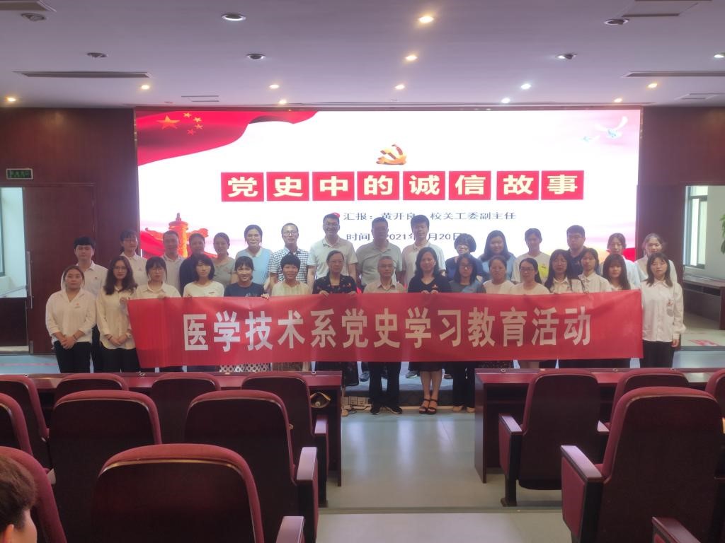 5月20日,校关工委副主任黄开良为医学技术系党员教师和131名入党积极分子讲述党史中的诚信故事,他围绕开展党史学习教育的重大意义,通过“诚信为公的红色金融家--高捷成”“写在墙上的留款信”等党史中的诚信故事,将学习党史和诚信教育融会贯通、有机结合,讲述了党的百年奋斗史,彰显中国共产党以诚信赢得人民信任、取得人民支持,引导学生用党的奋斗历程和伟大成就鼓舞斗志、明确目标,树立和践行社会主义核心价值观。
