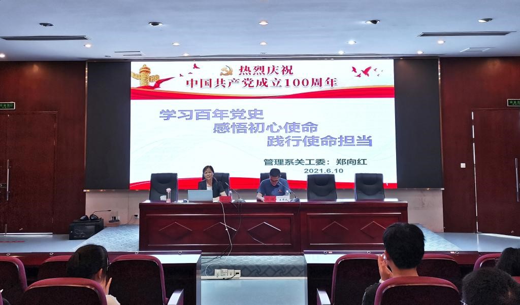 6月10日,校关工委成员、健康管理系关工委主任郑向红为管理系师生党员和入党积极分子做“学习百年党史,感悟初心使命,践行使命担当”主题讲座,郑向红同志和与会师生共同追忆了党的百年征程,勉励师生要明理增信,不忘初心、牢记使命,鼓励学生践行誓言担当争做六有大学生。